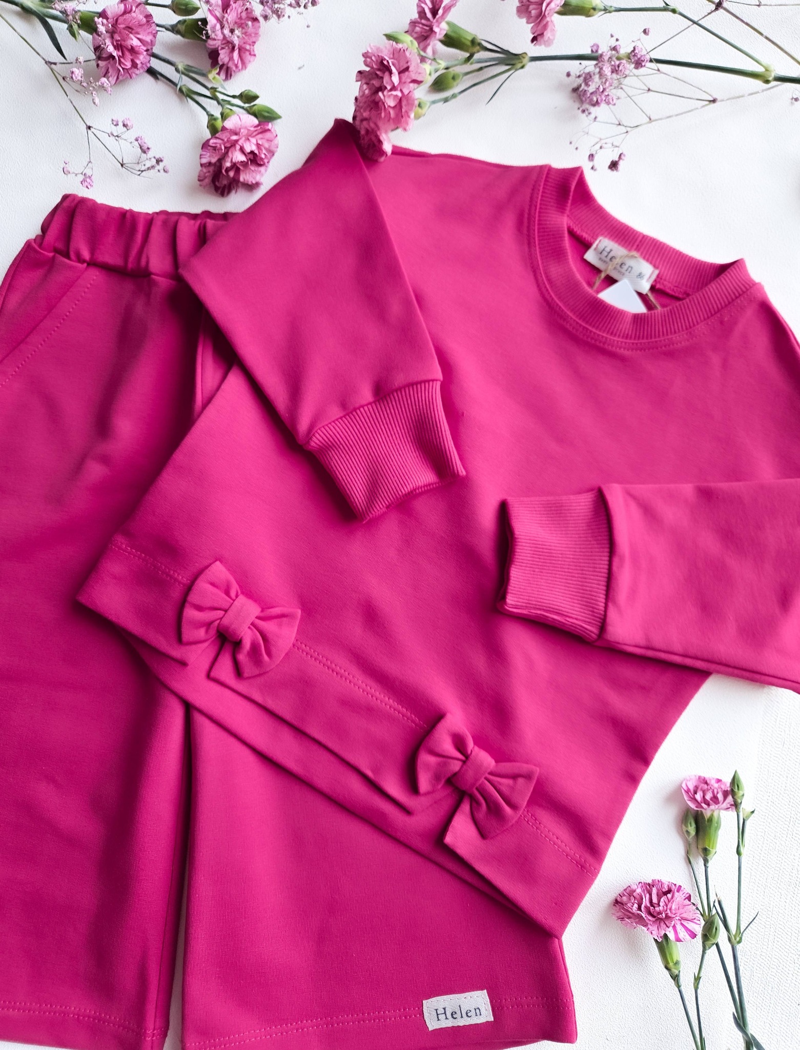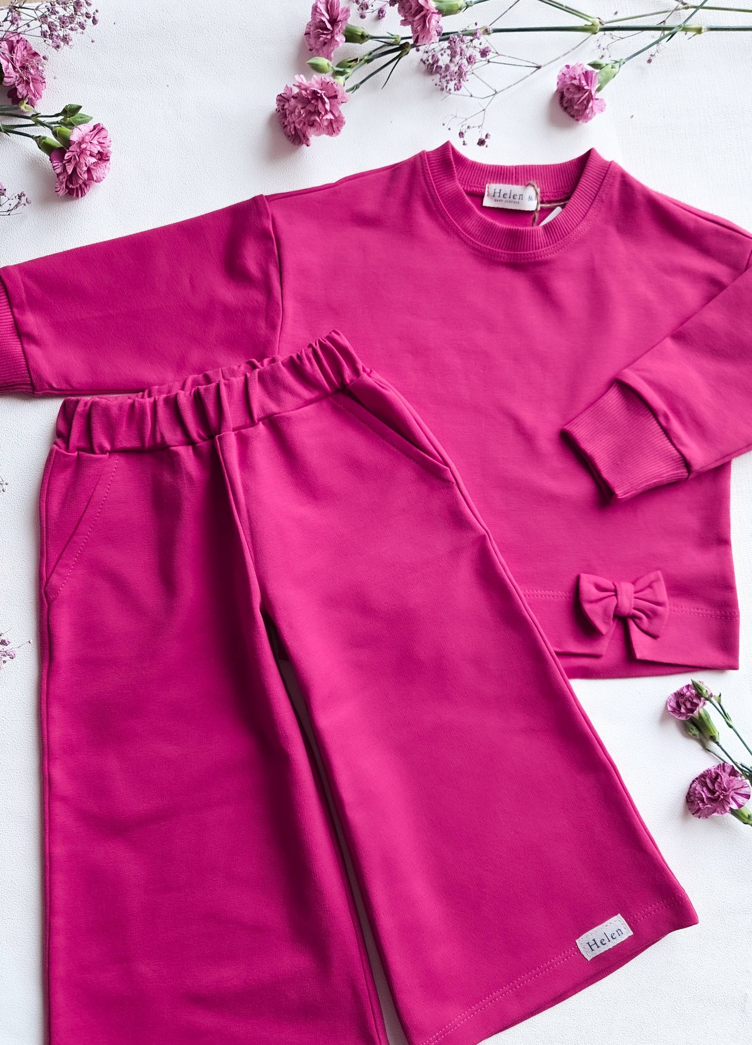 Tüdrukute mugav ja stiilne dressikomplekt vaarikaroosa toonis. Komplekti kuulub pehme pusa armsate lipsudega ning elastse vöökohaga laiad püksid, mis tagavad liikumisvabaduse ja kandmismugavuse kogu päevaks. Ideaalne valik nii igapäevaseks kandmiseks kui ka pidulikumateks hetkedeks.