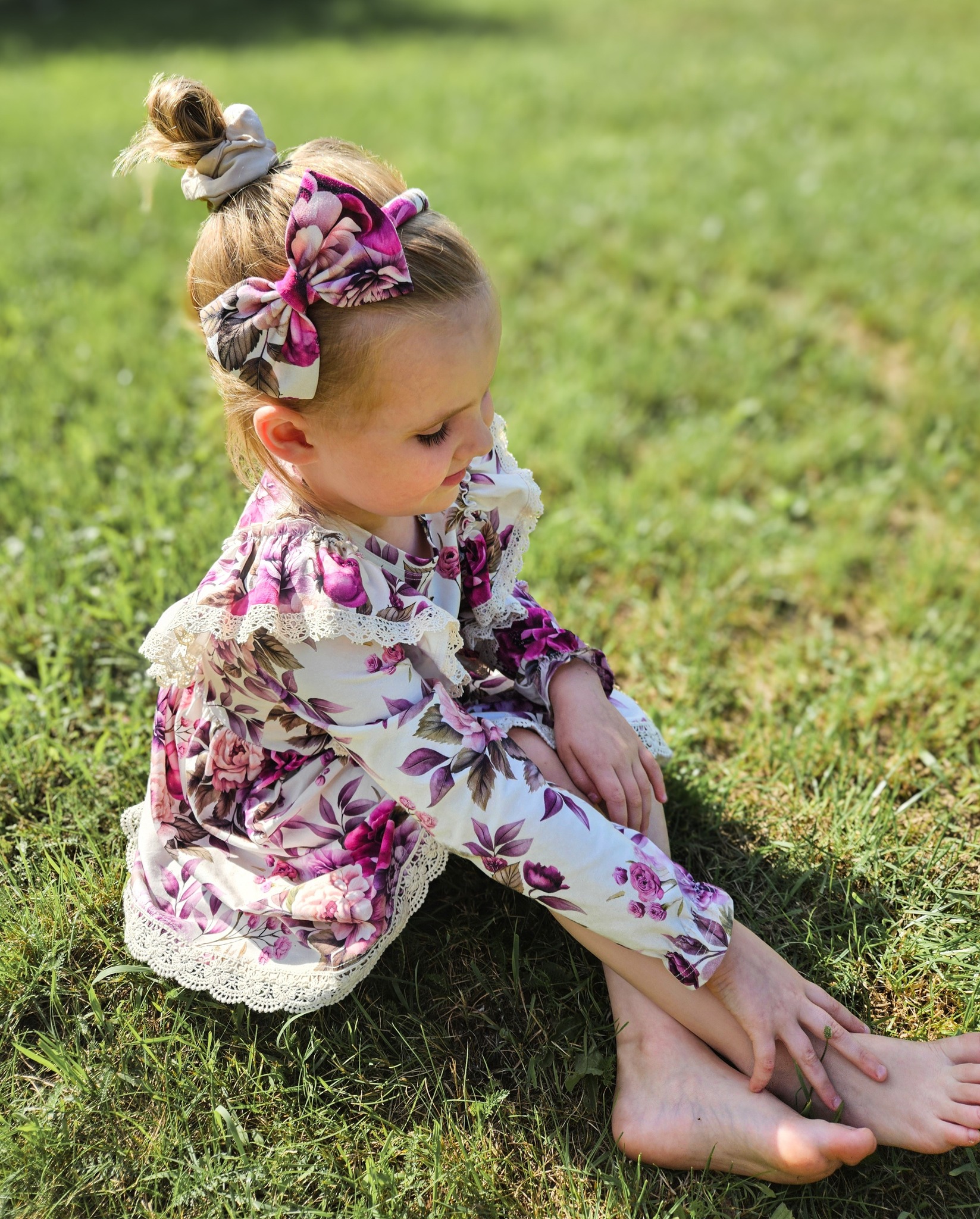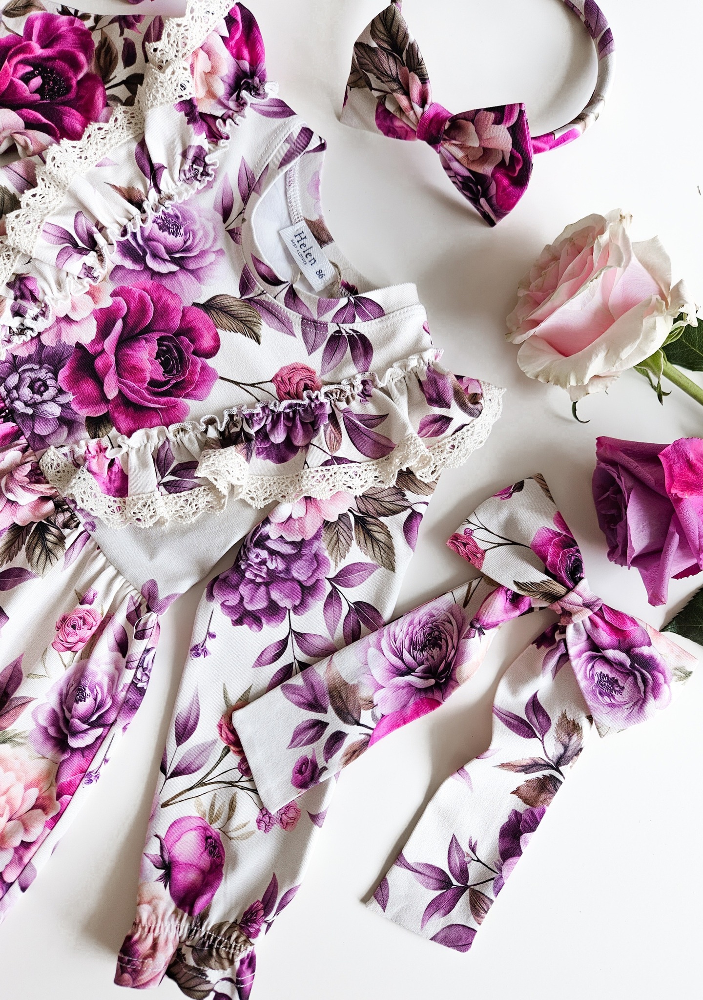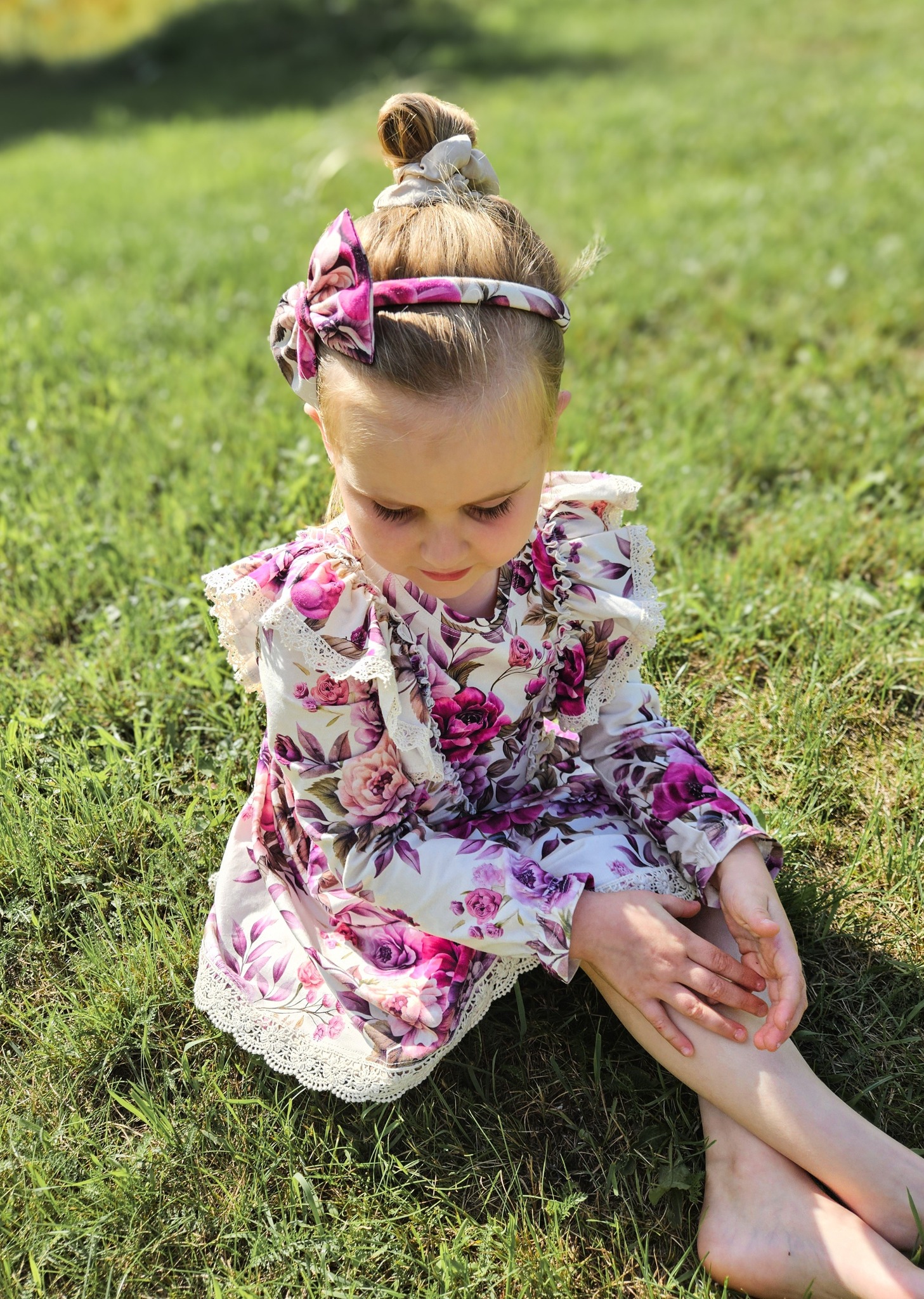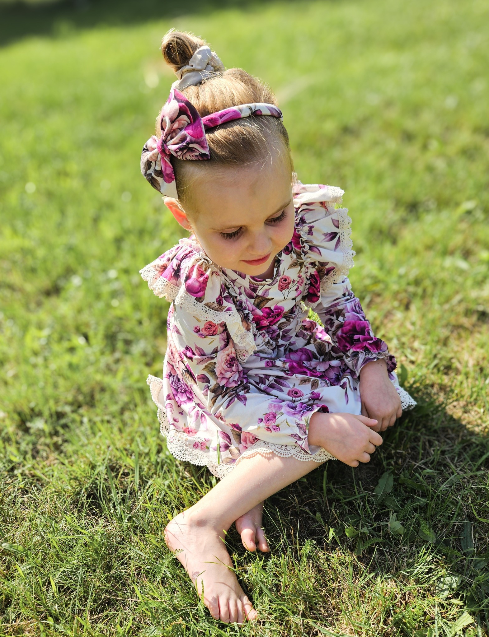 Imeliselt romantiline lillekleit, mis viib otse õitsvasse roosiaeda. Sügavlillad ja roosad õied kaunistavad kleiti elegantselt, pitsi- ja volangidetailid lisavad aga pehmust ja tüdrukulikku võlu. Täiuslik valik nii pidulikeks sündmusteks kui ka erilisemateks igapäevahetkedeks.