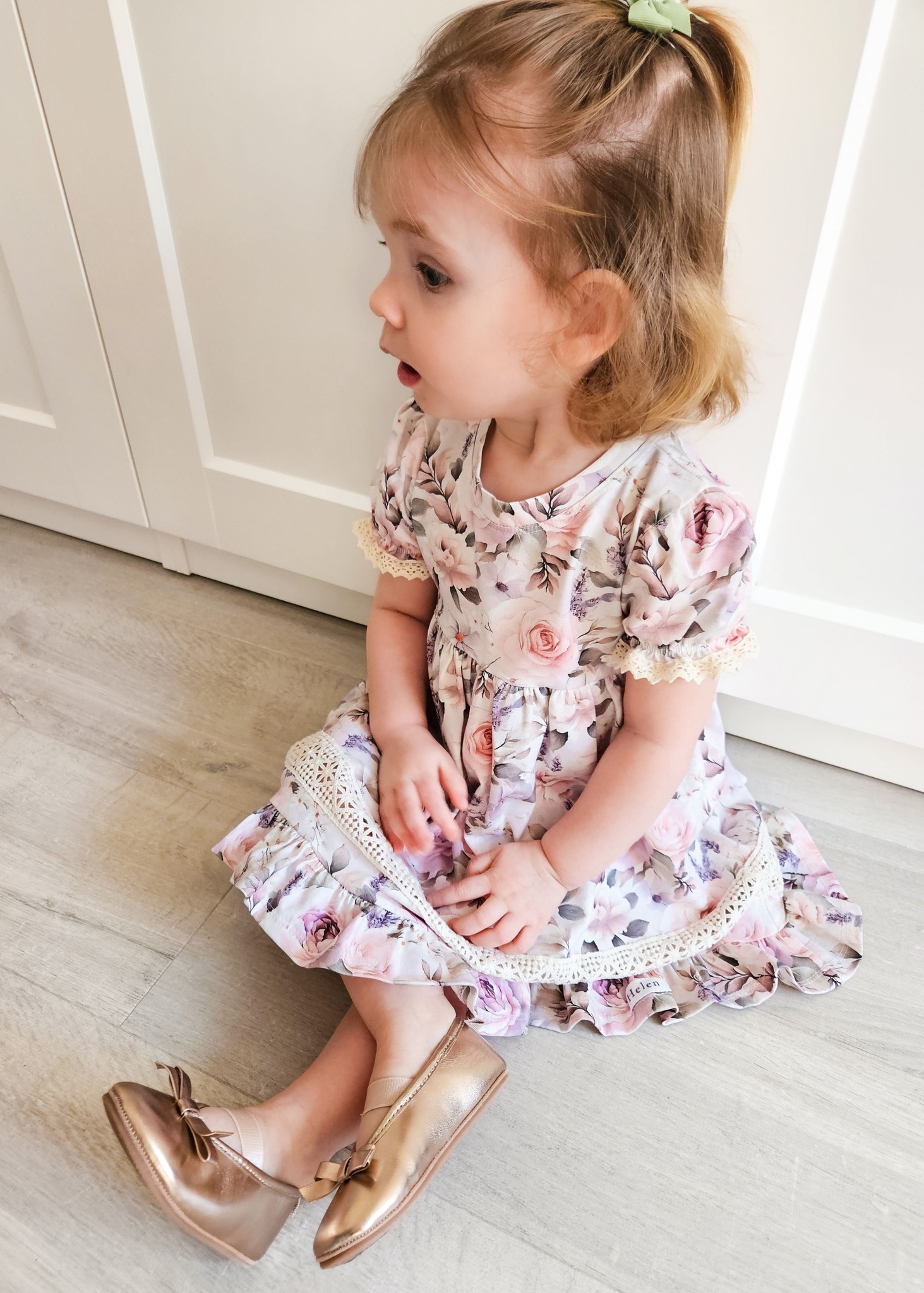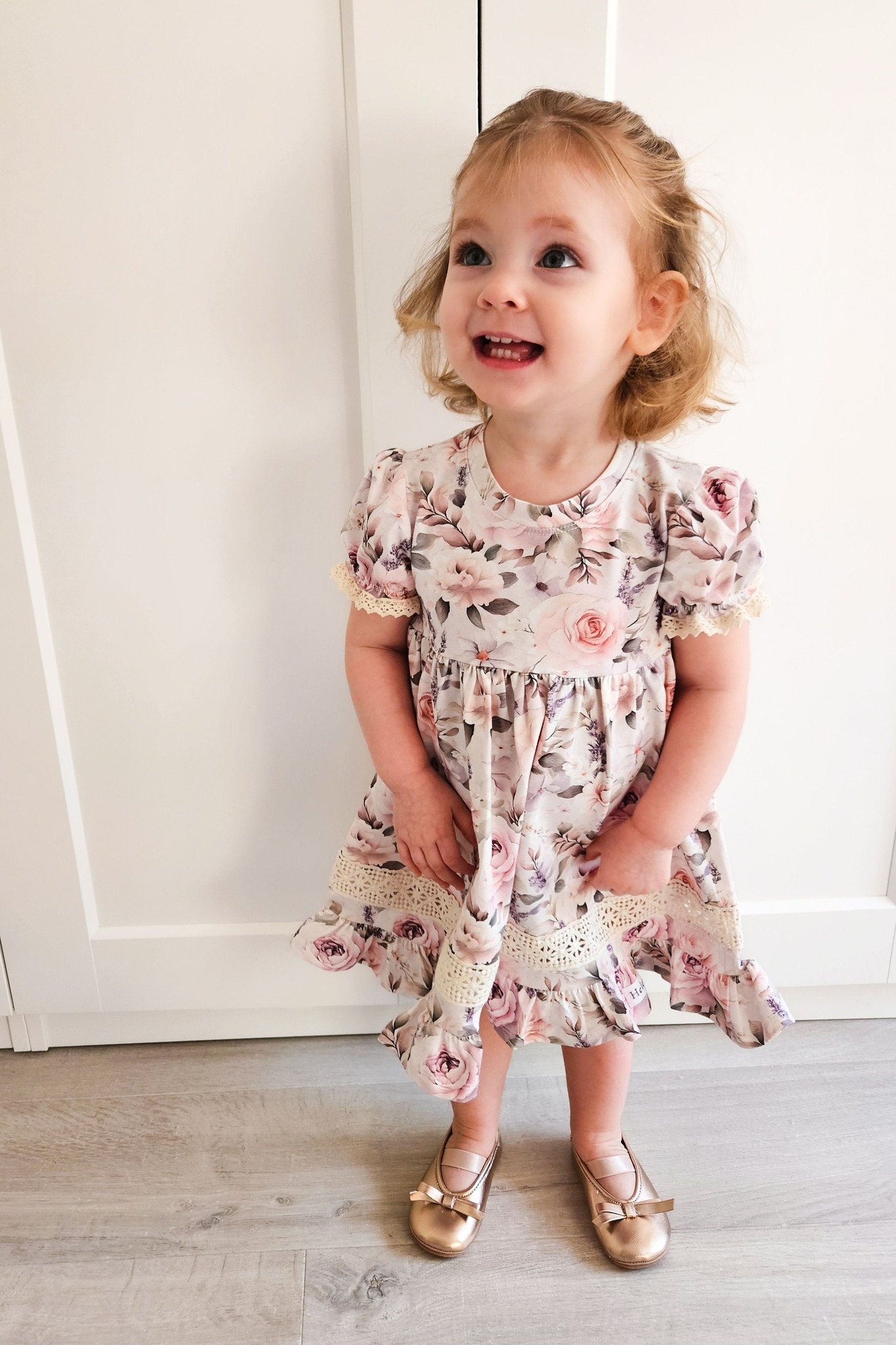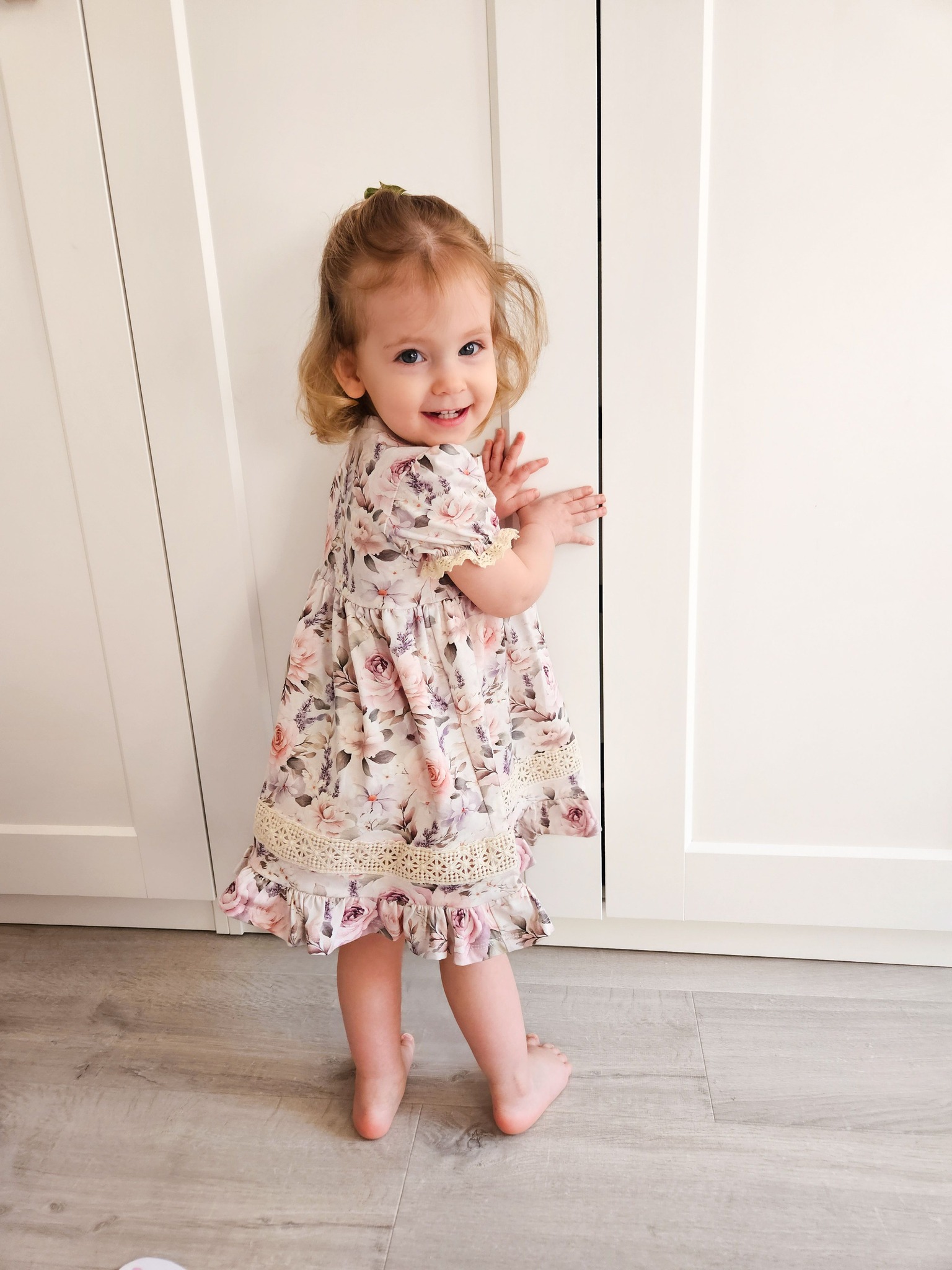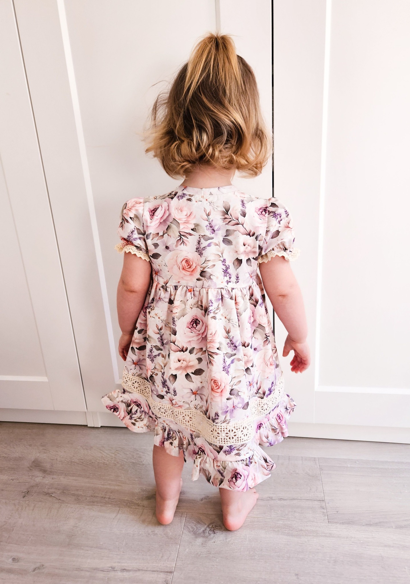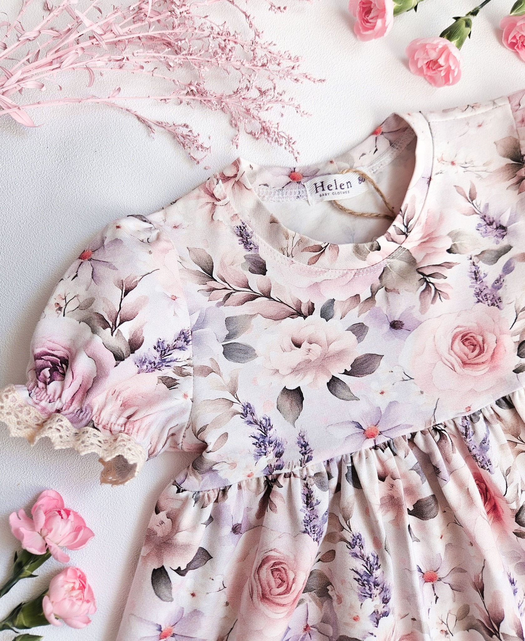 Lummav lilleline kleit, mis kiirgab soojust ja romantikat. Pastelsetes toonides roosimuster, kaunid satsid ja pitskaunistused loovad ajatu ning tõeliselt tüdrukuliku ilme. Sobib ideaalselt nii pidulikeks sündmusteks kui ka igapäevasteks rõõmsateks hetkedeks.