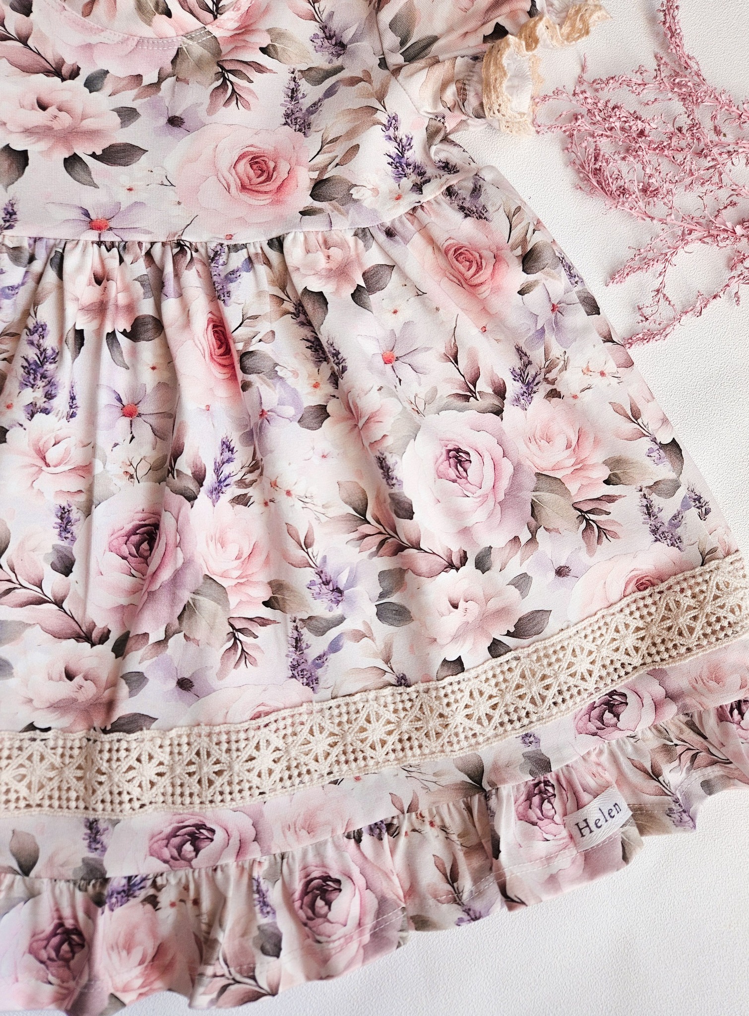 ✨ Detailid: Õhulised volangid, romantiline lillemuster ja pitsiaksendid, mis toovad esile klassikalise elegantsi.