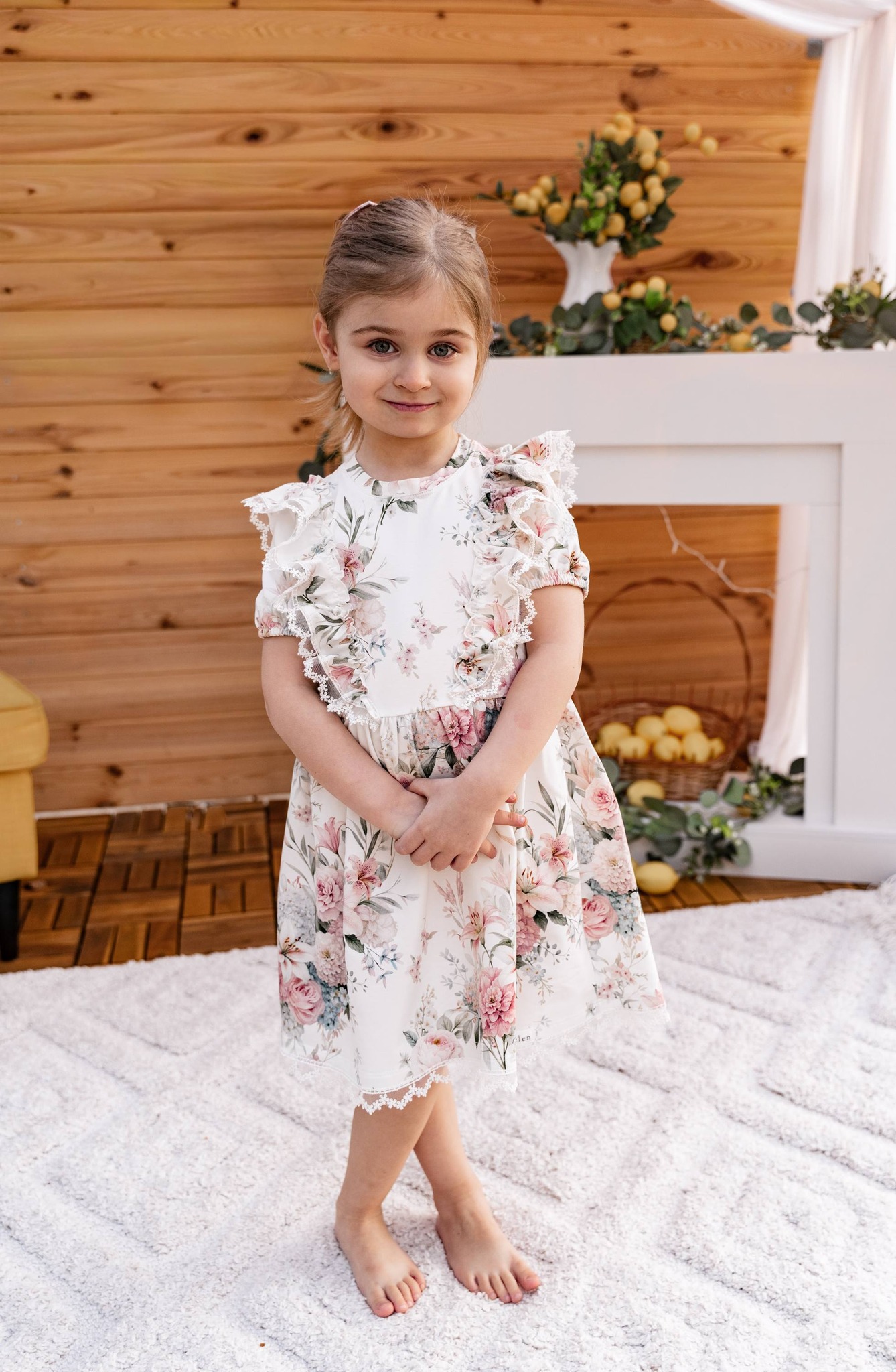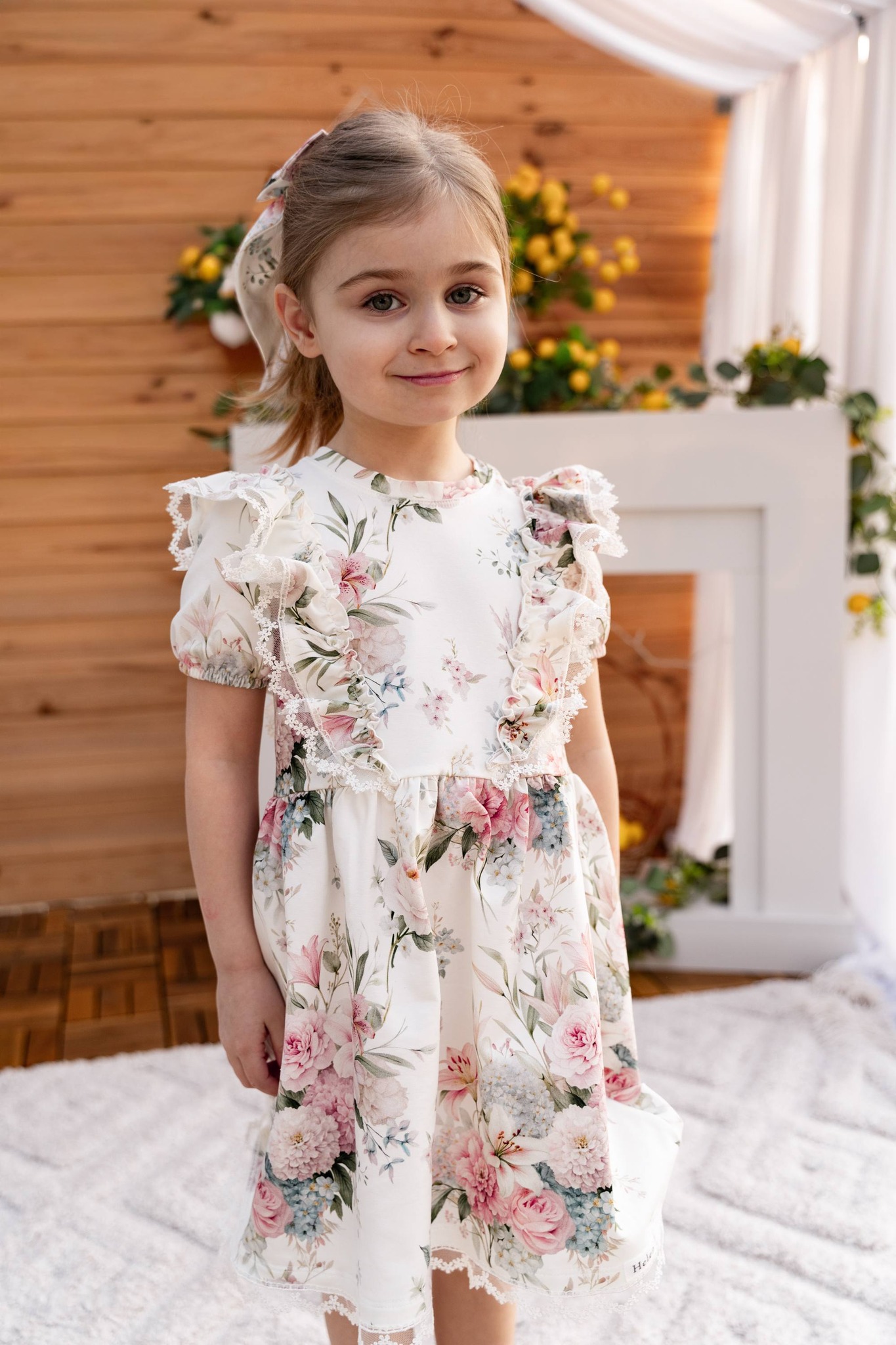 💗 Romantiline lillemuster ja pitsdetailid teevad sellest kleidist ajatu lemmiku iga väikese neiu garderoobis.