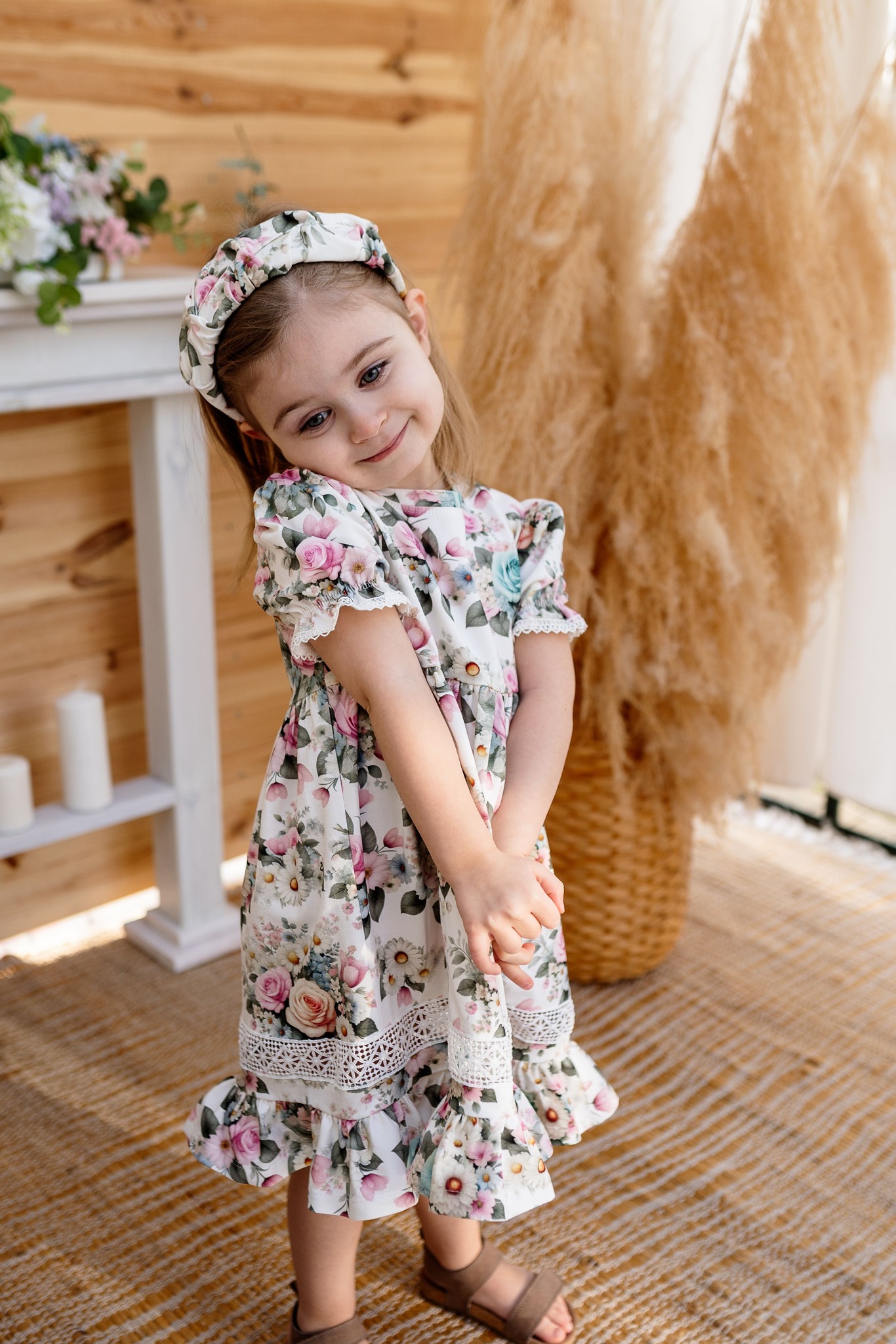 ✨ Detailid: Kaunid lillemustrid, volangid ja pitskaunistused, mis lisavad armsust ja ajatut elegantsi.
