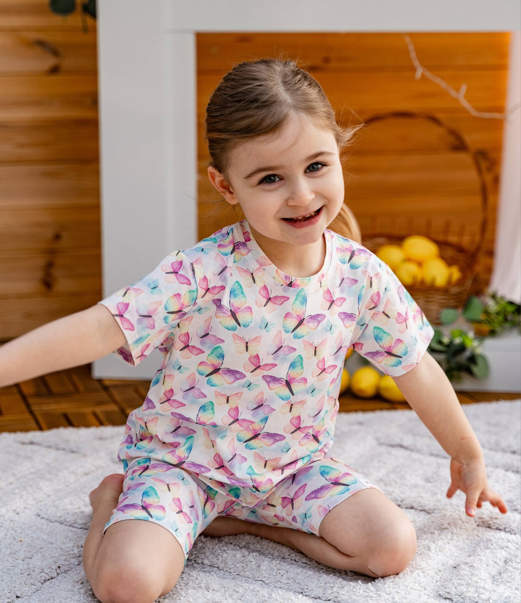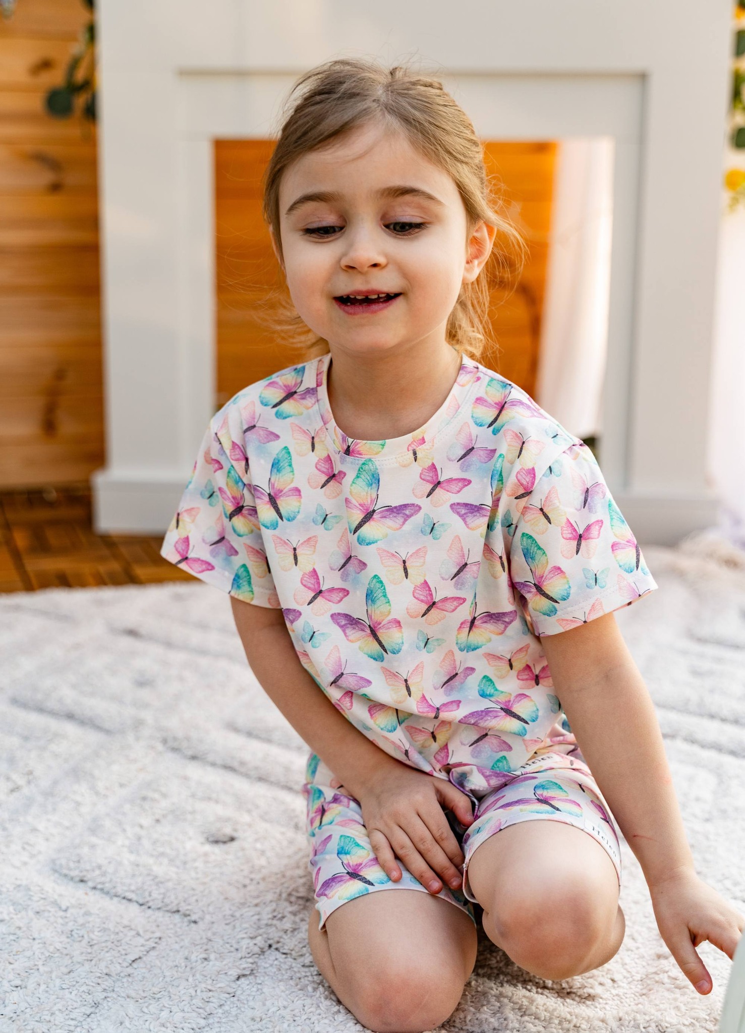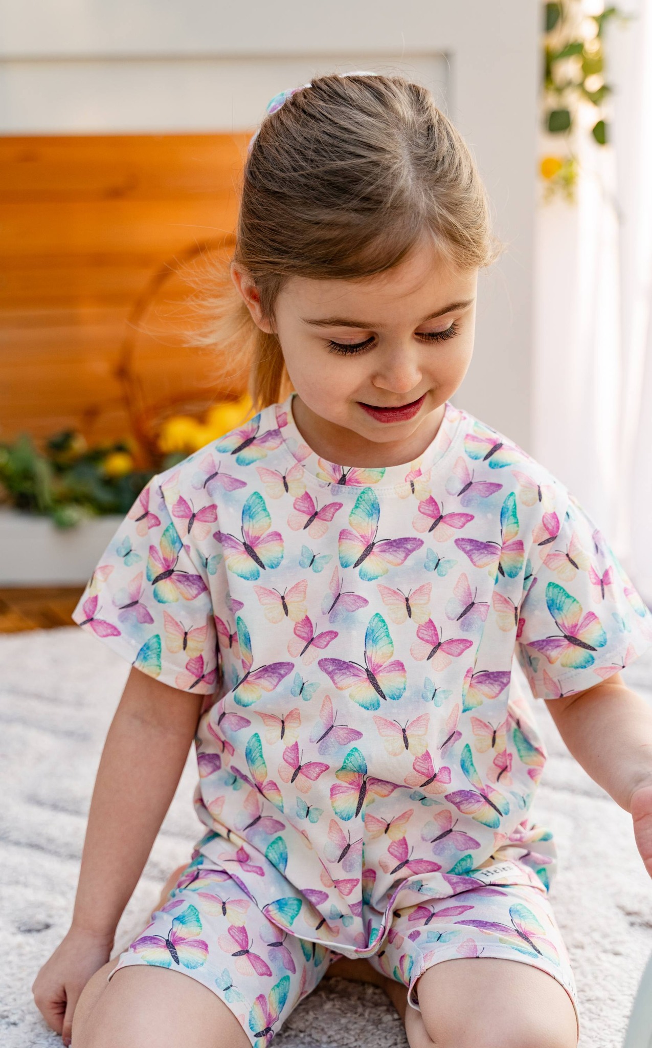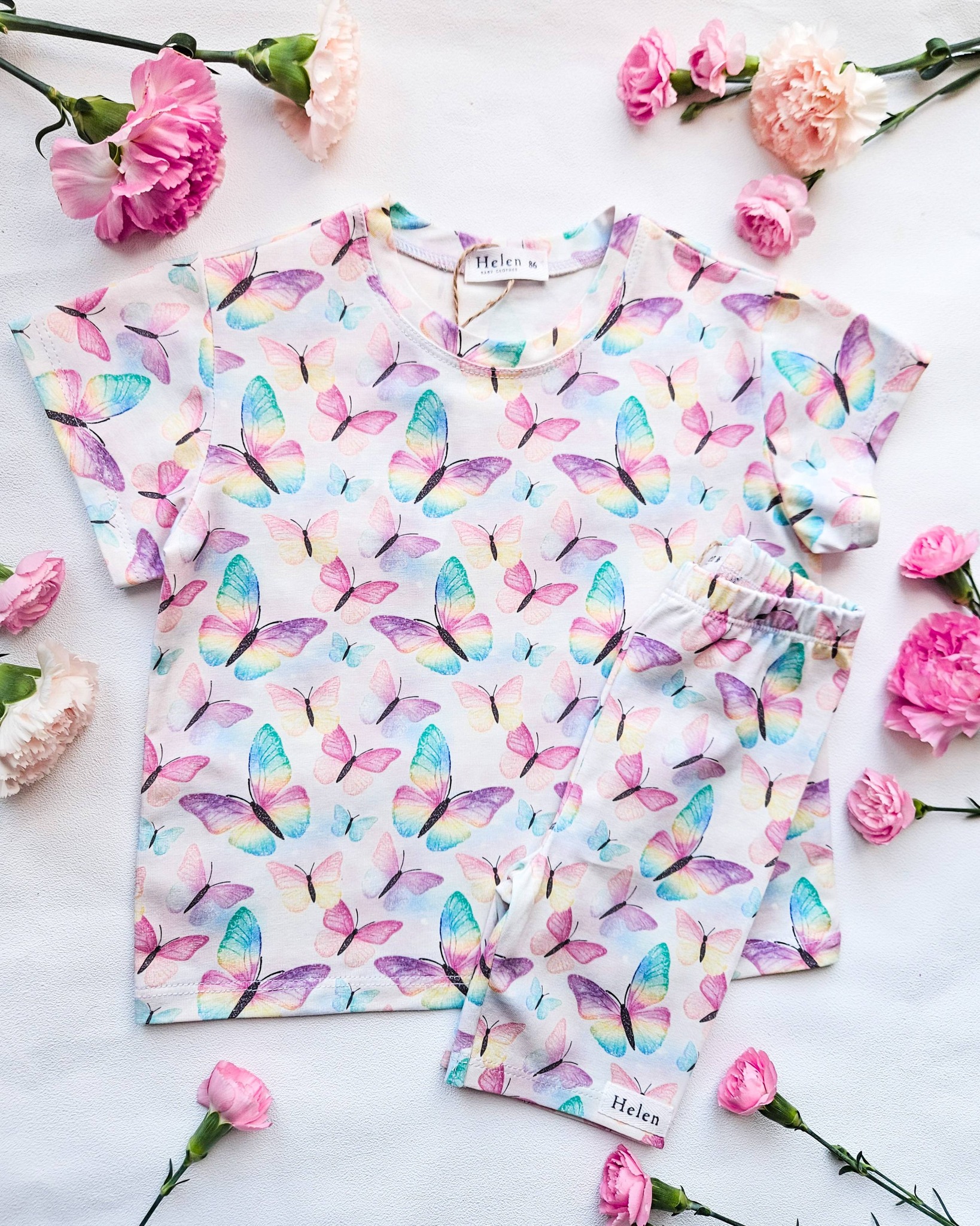 🦋 Komplekt „Pastelsed Liblikad“ – pluus + biker shorts