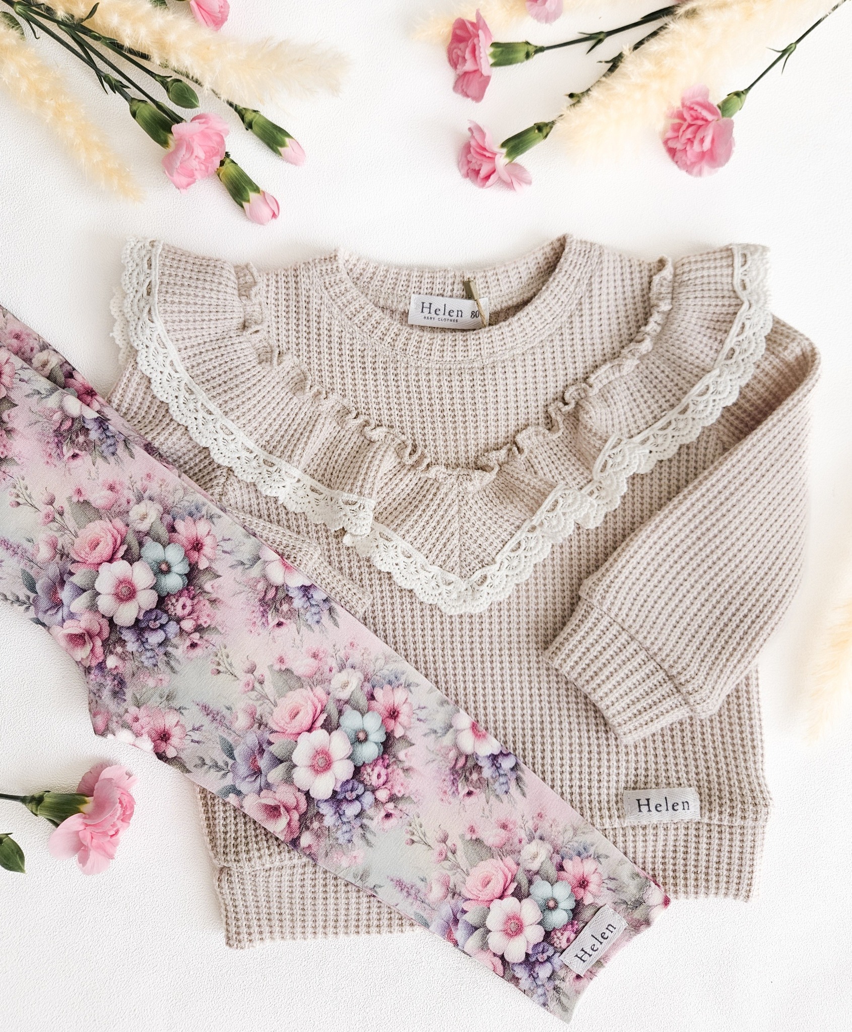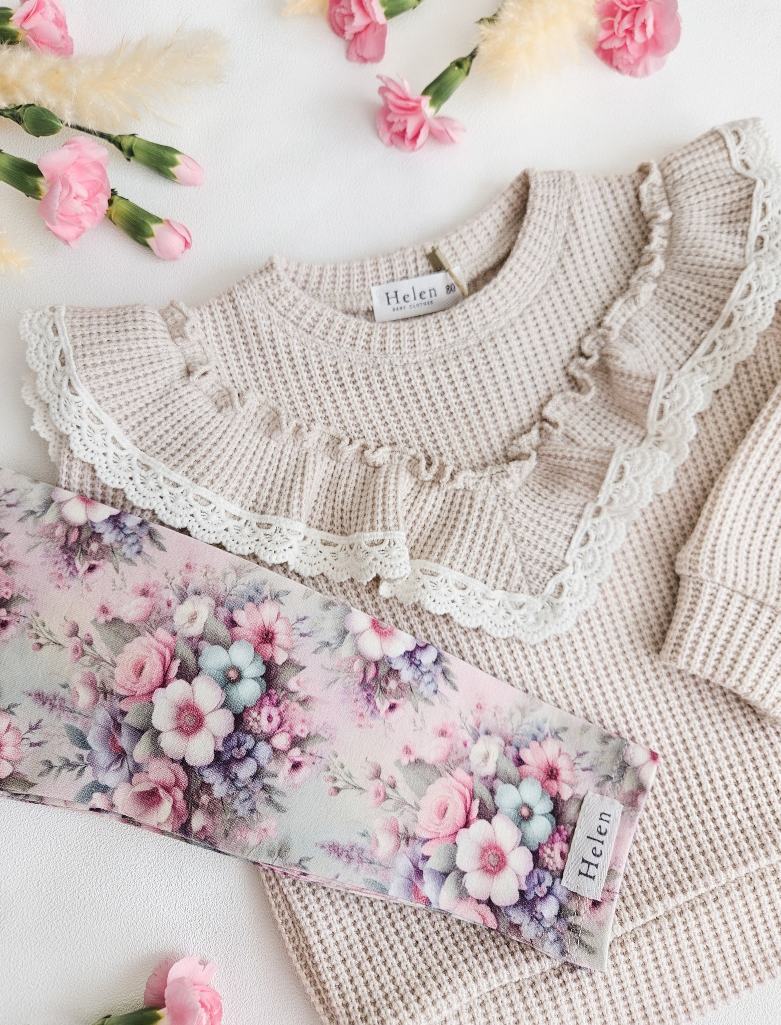 Imeilusad ja mugavad retuusid õrna lillemustriga, mis toovad lapse rõivakomplekti värskust ja romantilist meeleolu. Pastelsetes toonides roosad, lillad ja helesinised lilled loovad unenäolise ja õrna välimuse. Pehme, veniv kangas tagab liikumisvabaduse ja mugavuse igaks päevaks.
