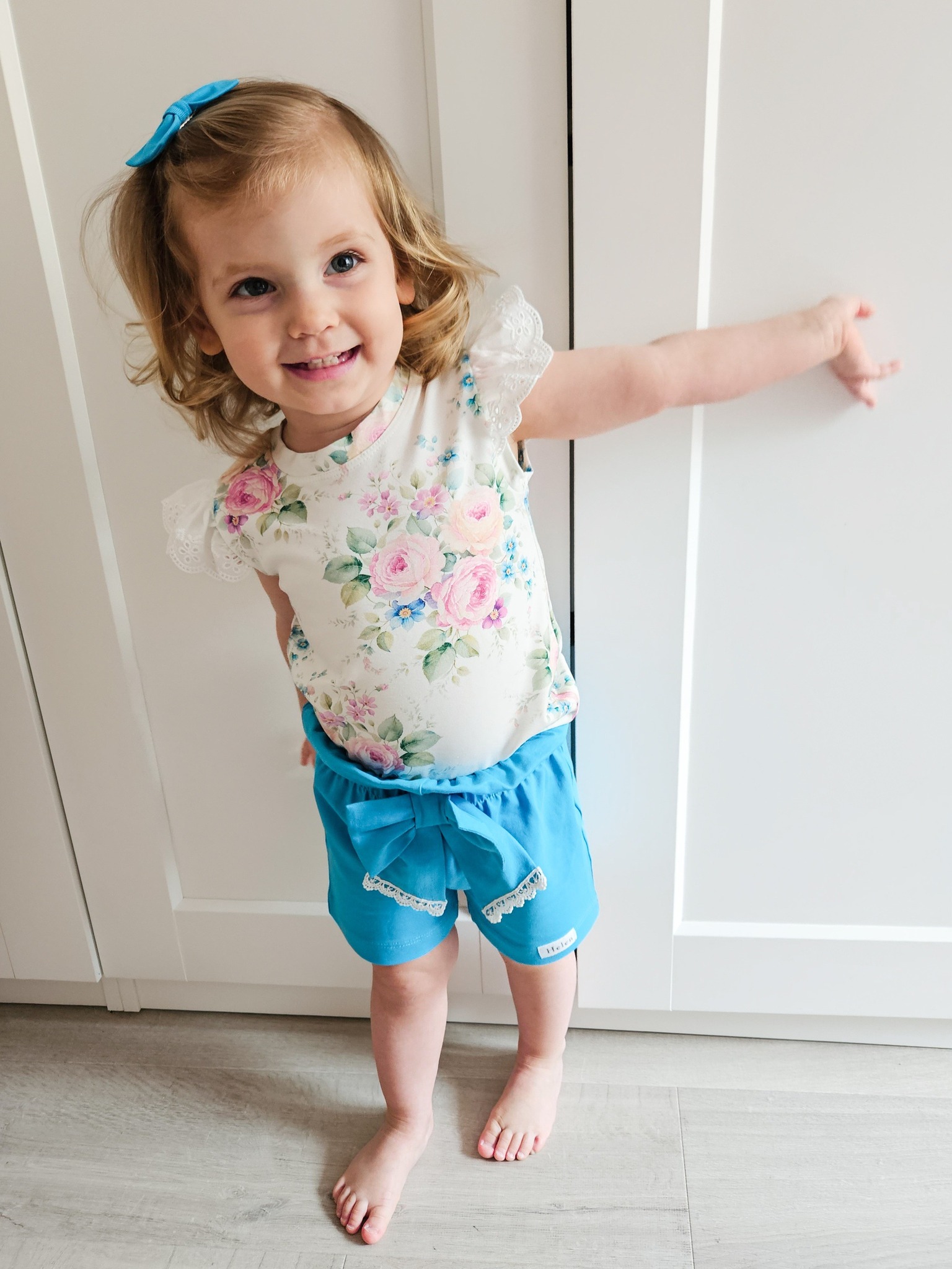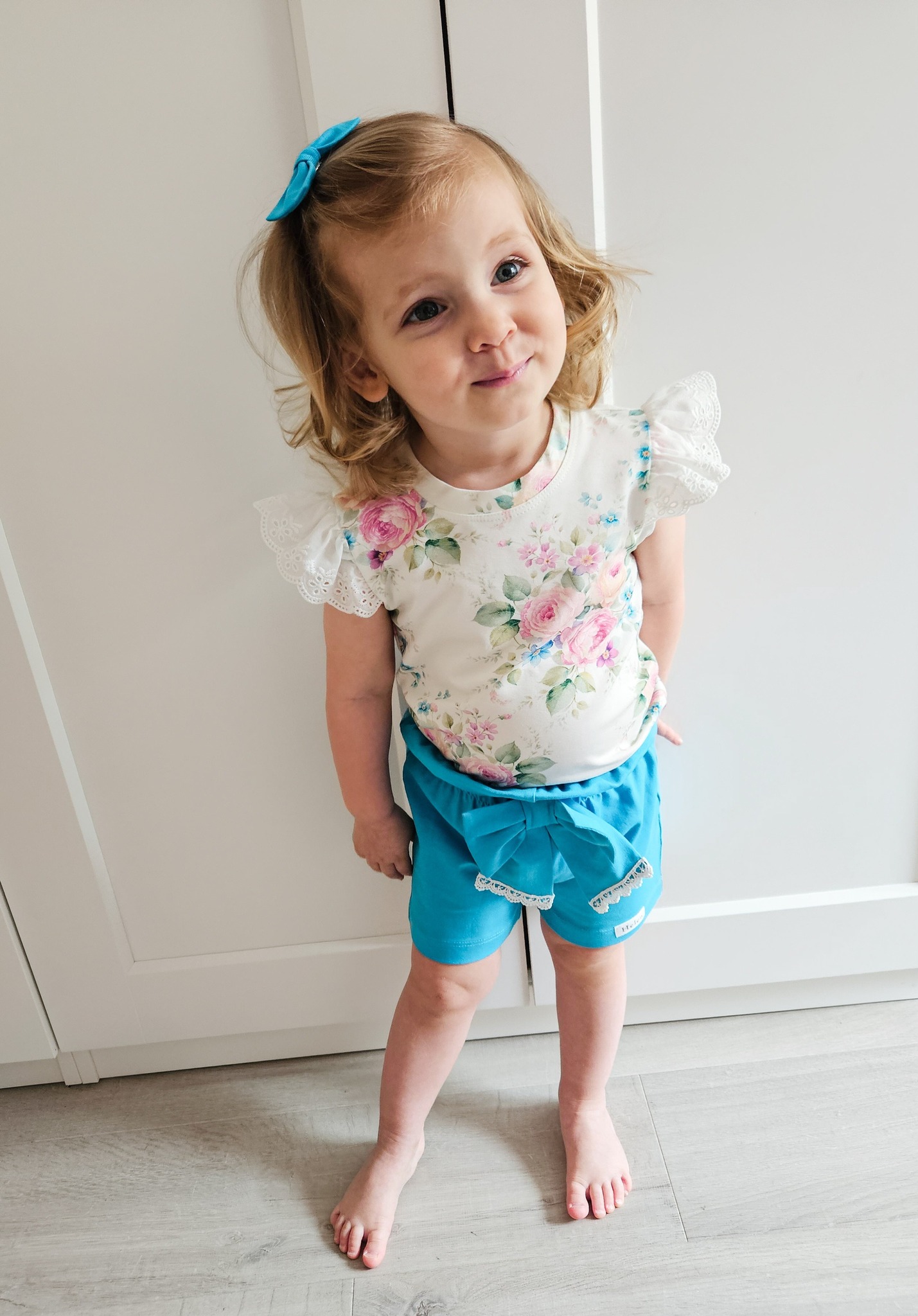 Stiilsed ja mugavad lühikesed püksid, mis lisavad igasse suvepäeva rõõmsat värvi. Elastne vöökoht tagab mugava istuvuse, samas kui ees olev suur lips loob armsa ja piduliku ilme. Pitsilised detailid annavad pükstele romantilise nüansi. Täiuslik valik nii pidupäevaks kui ka igapäevaseks kandmiseks.