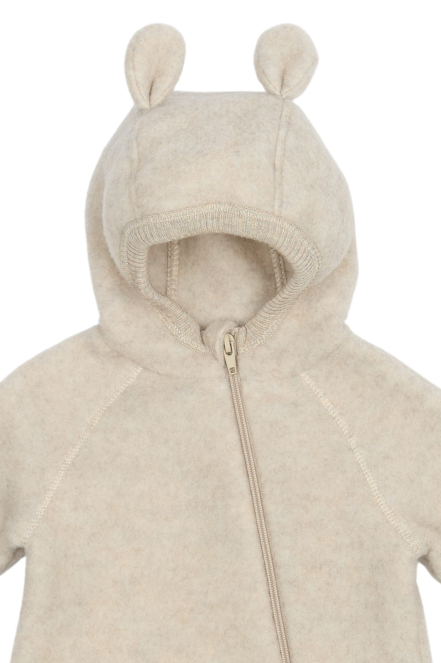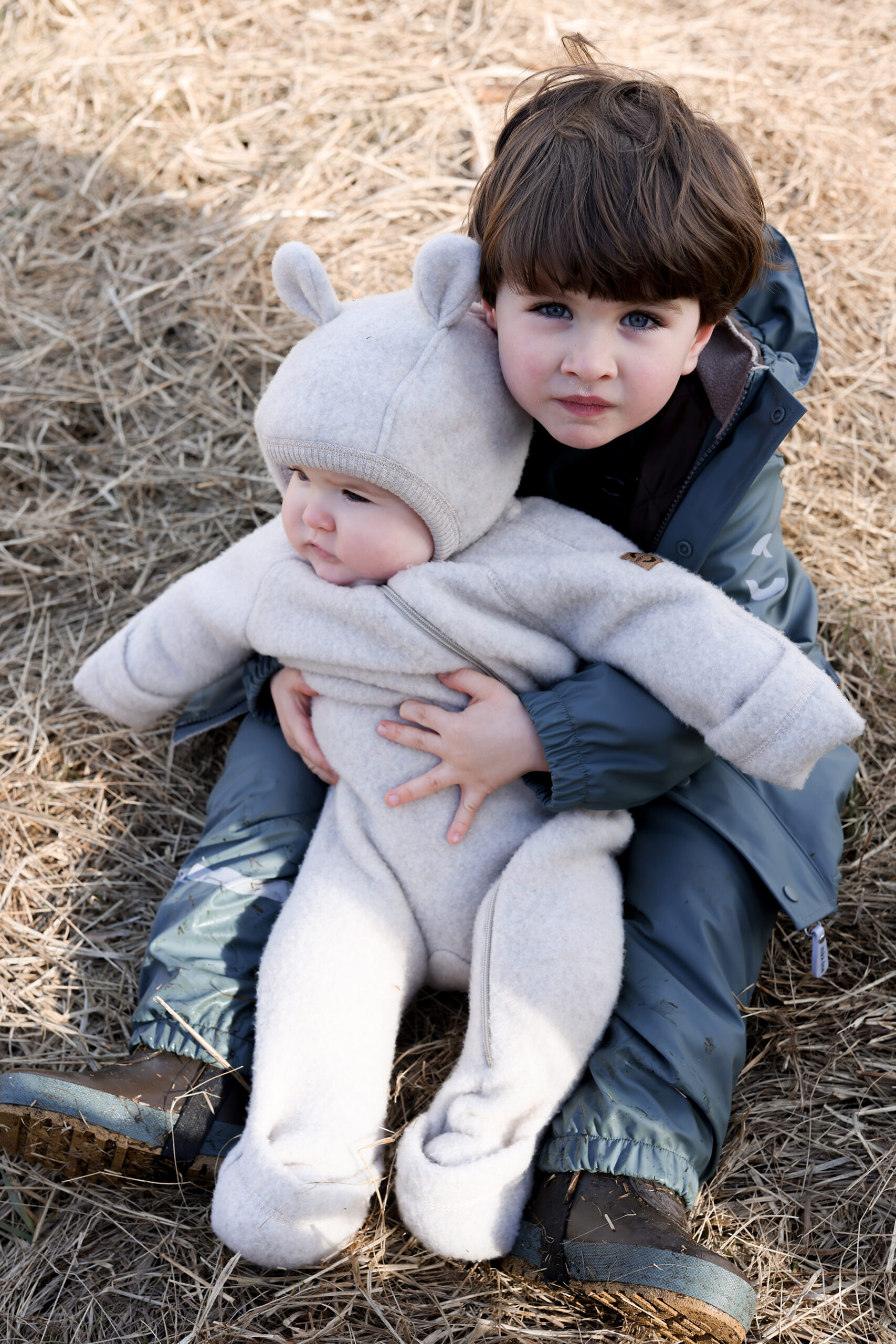 Mikk-Line’i pehme kapuutsi ja armsate kõrvadega meriinovillane beebikombe on soe ja hingav valik jalutuskäikudeks, uinakuteks ja autosõitudeks jaheda või külma ilmaga. 100% mulesing-vaba meriinovill hoiab lapse kehatemperatuuri stabiilsena ning juhib niiskuse kehast eemale. Pööratavad soonikud katavad vajadusel käed ja jalad, lisades veelgi soojust.
