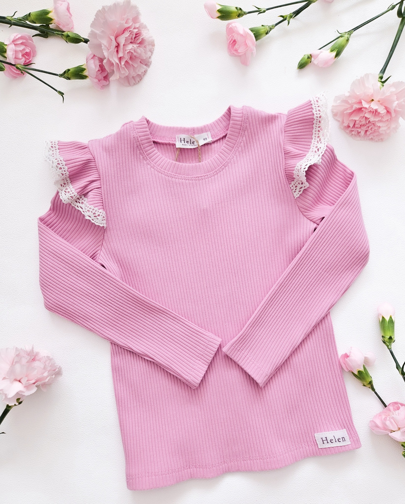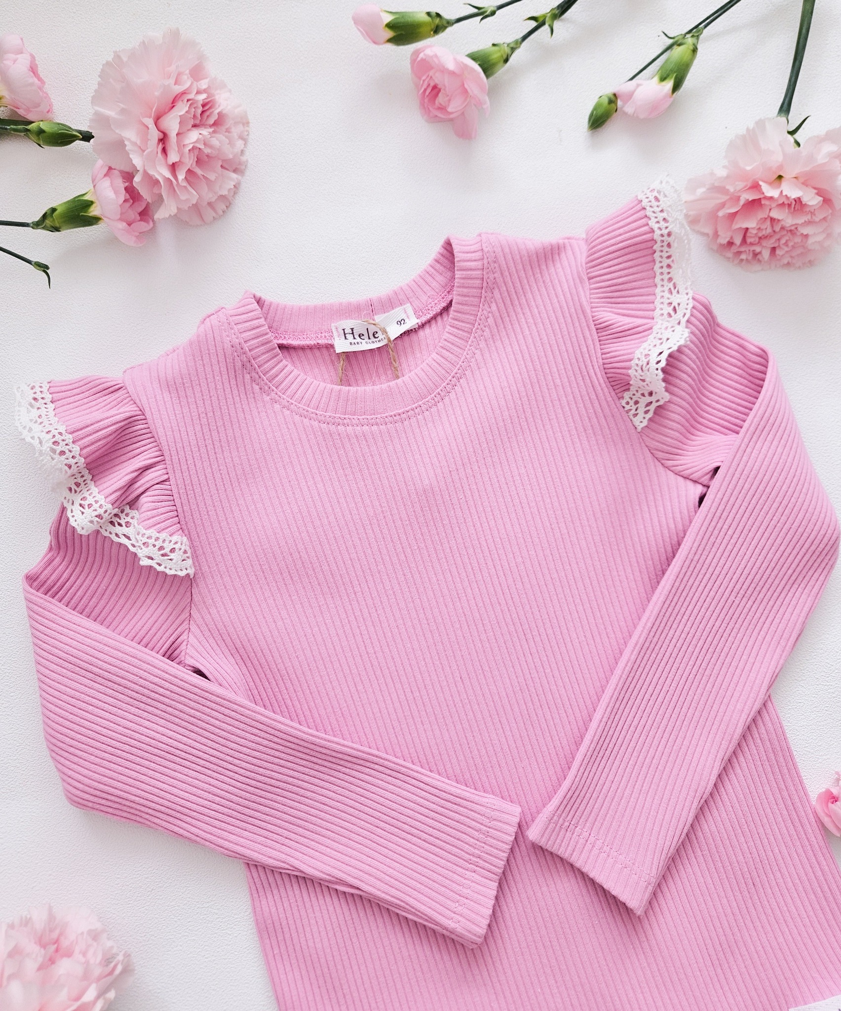 Tüdrukute soonikpluus: pitsiliste satsidega – kommiroosa 🍬🌸