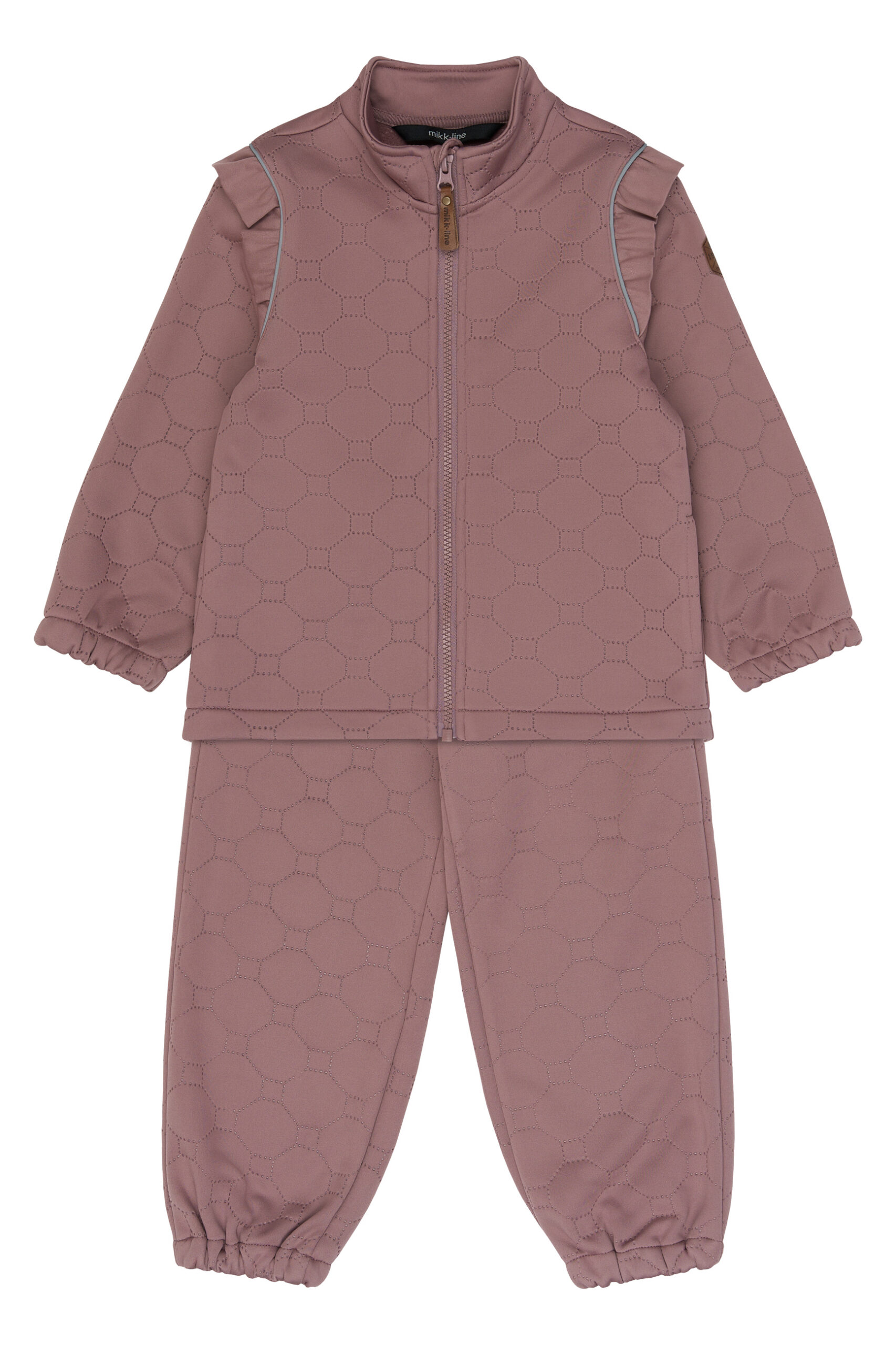 Mikk-Line Soft Thermal Set Warm Frill on mõnus ja soe kaheosaline komplekt tüdrukutele jahedamateks ilmadeks. Tepitud 100% polüestrist termo-kangas pakub usaldusväärset soojust ilma raskustundeta ning hingav disain aitab aktiivse mängu ajal kehatemperatuuri tasakaalus hoida.