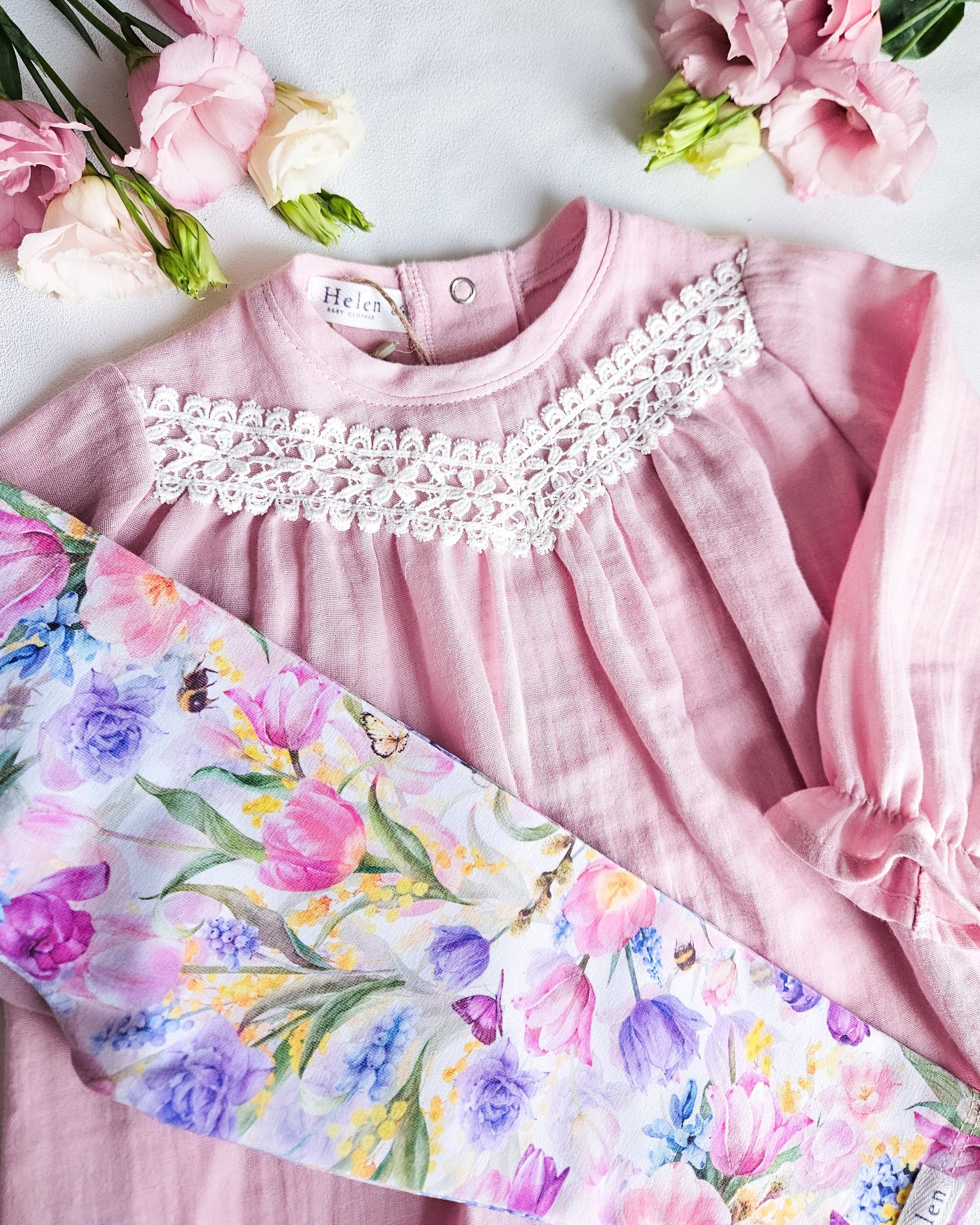 🌿 Materjal: musliin (puuvill) – pehme, hingav ja nahasõbralik