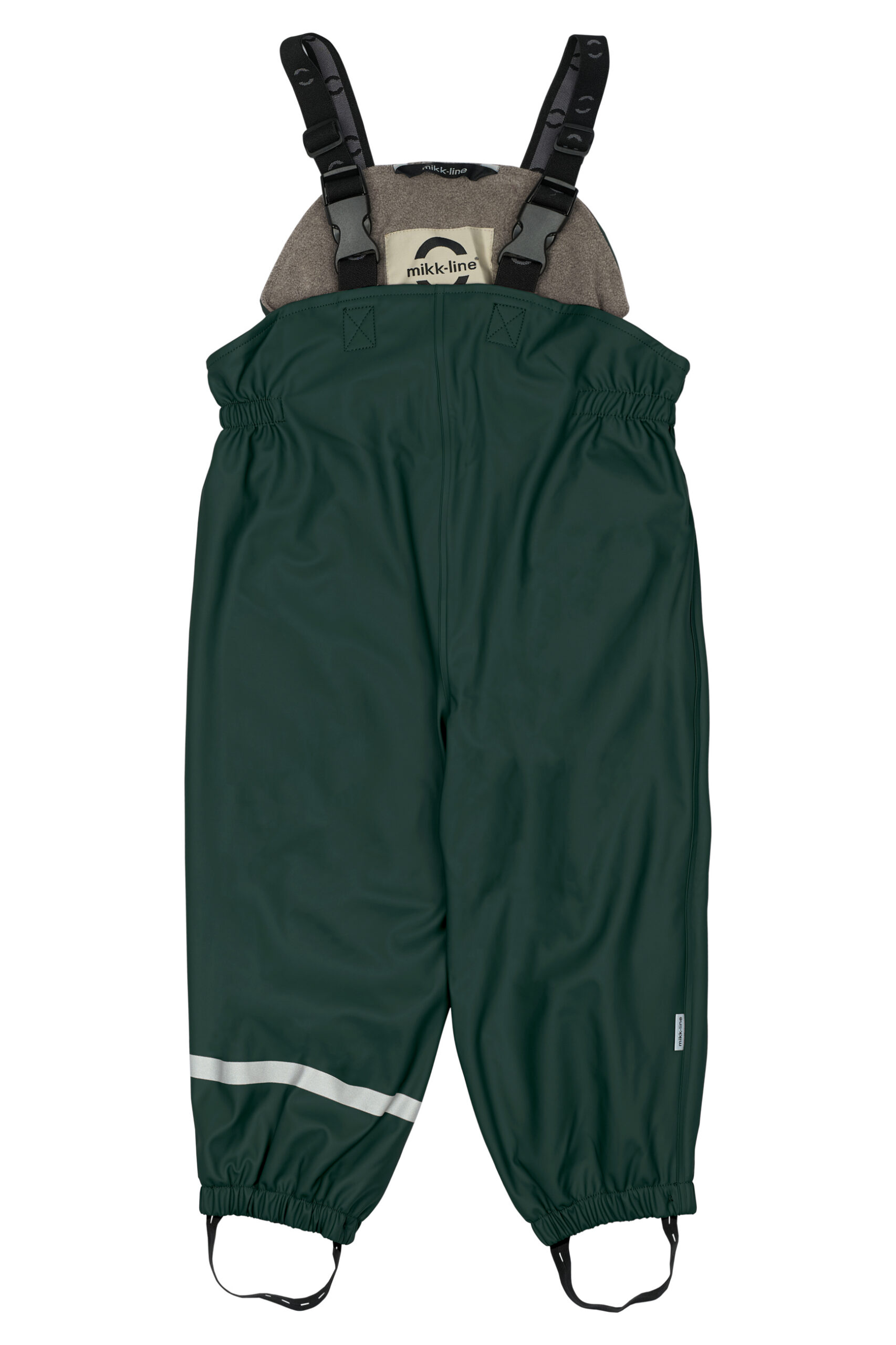 - Suurustes 110–152 on tavalised vihmapüksid reguleeritava elastse vöökohaga, ilma traksideta.